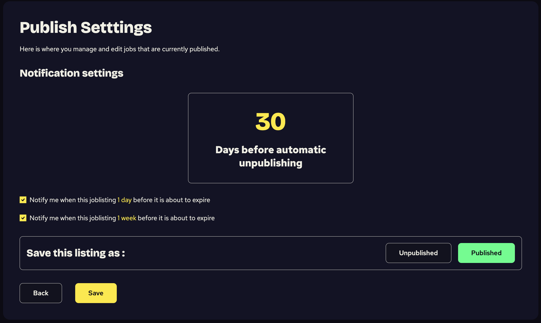 3. **Unpublished**: These jobs are **not live**. This is where your jobs will end up once their 30-day time limit expires. You can also unpublish your jobs at any time.